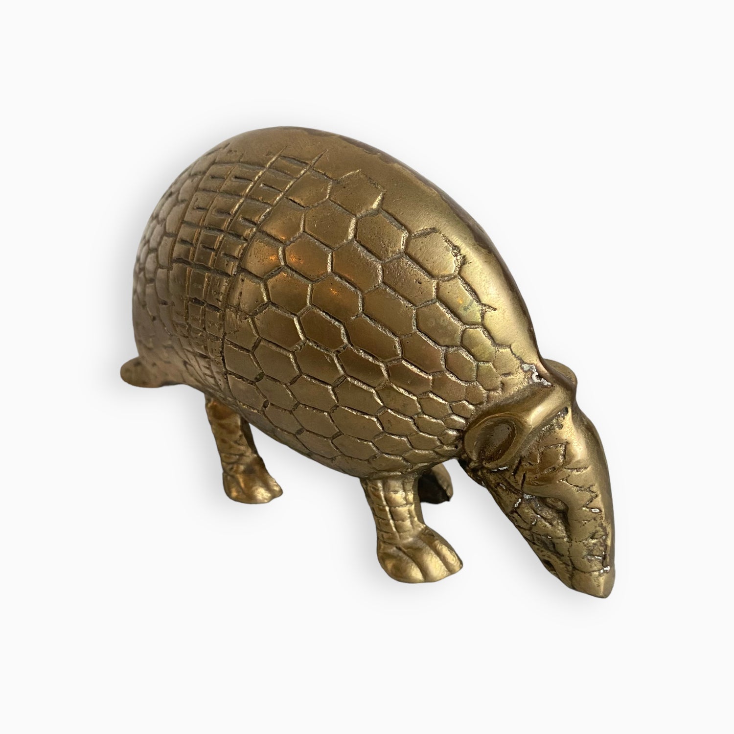 From birds to camels to donkeys, the world of vintage decor is chock-full of brass animal figurines. Recently, we added a rather uncommon creature to our collection: a brass armadillo.