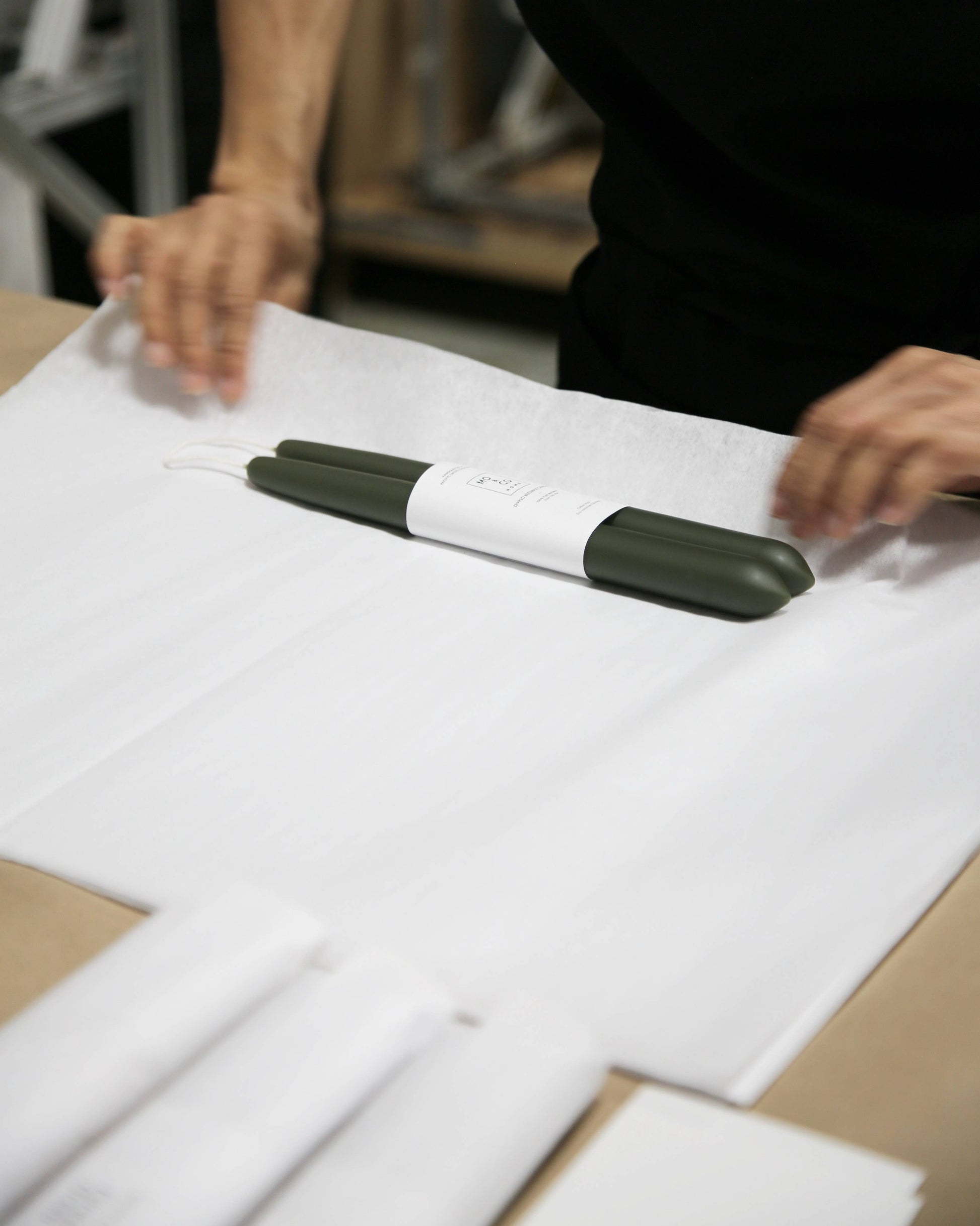 100% beeswax with a cotton wick and eco-conscious coloring. Free of paraffin, soy, lead, petroleum, and paraben.