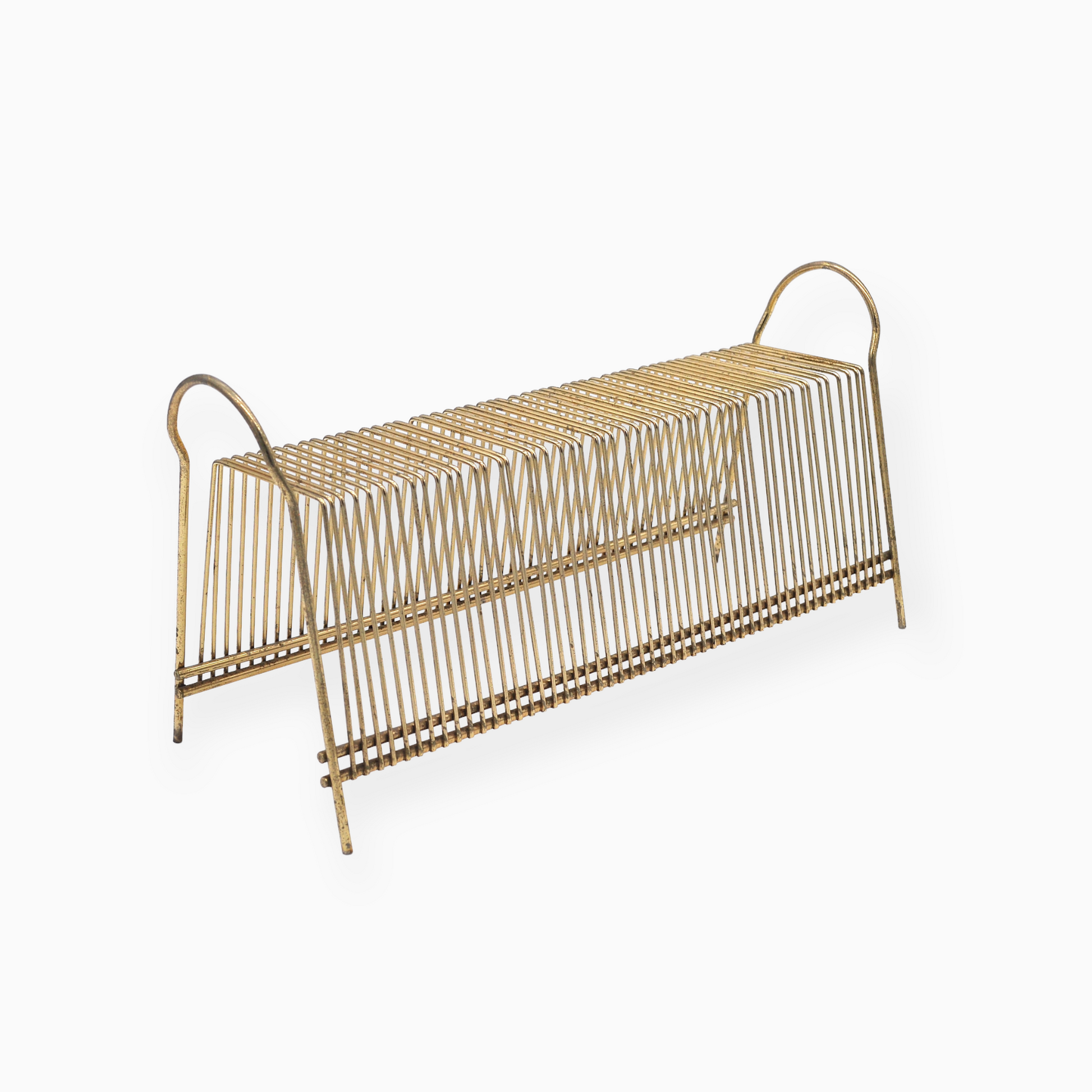 Retro brass record holder with 50 slots. Store your vinyl in style!