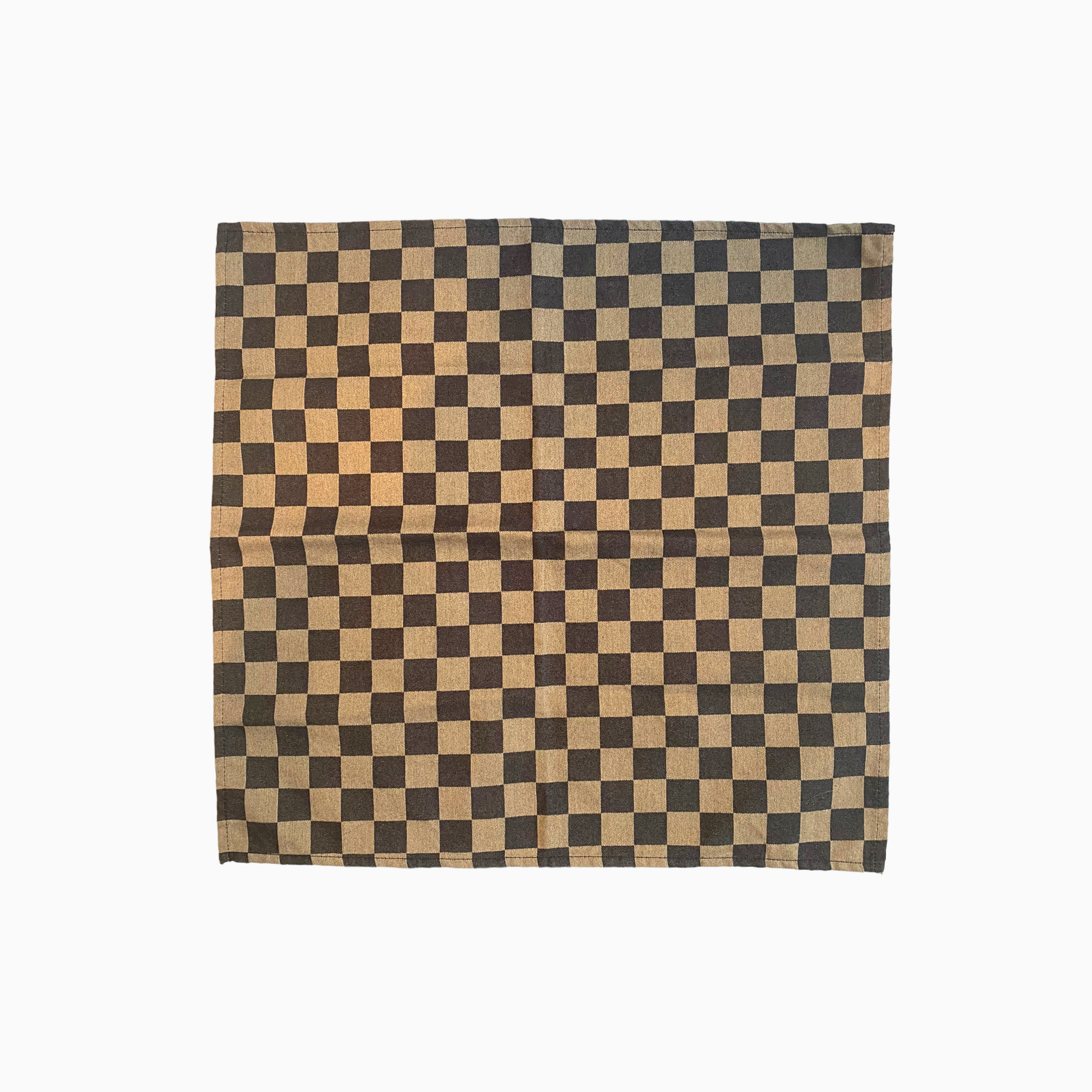 Set of six black and tan checkered napkins with retro vibe. In excellent condition with no signs of use.