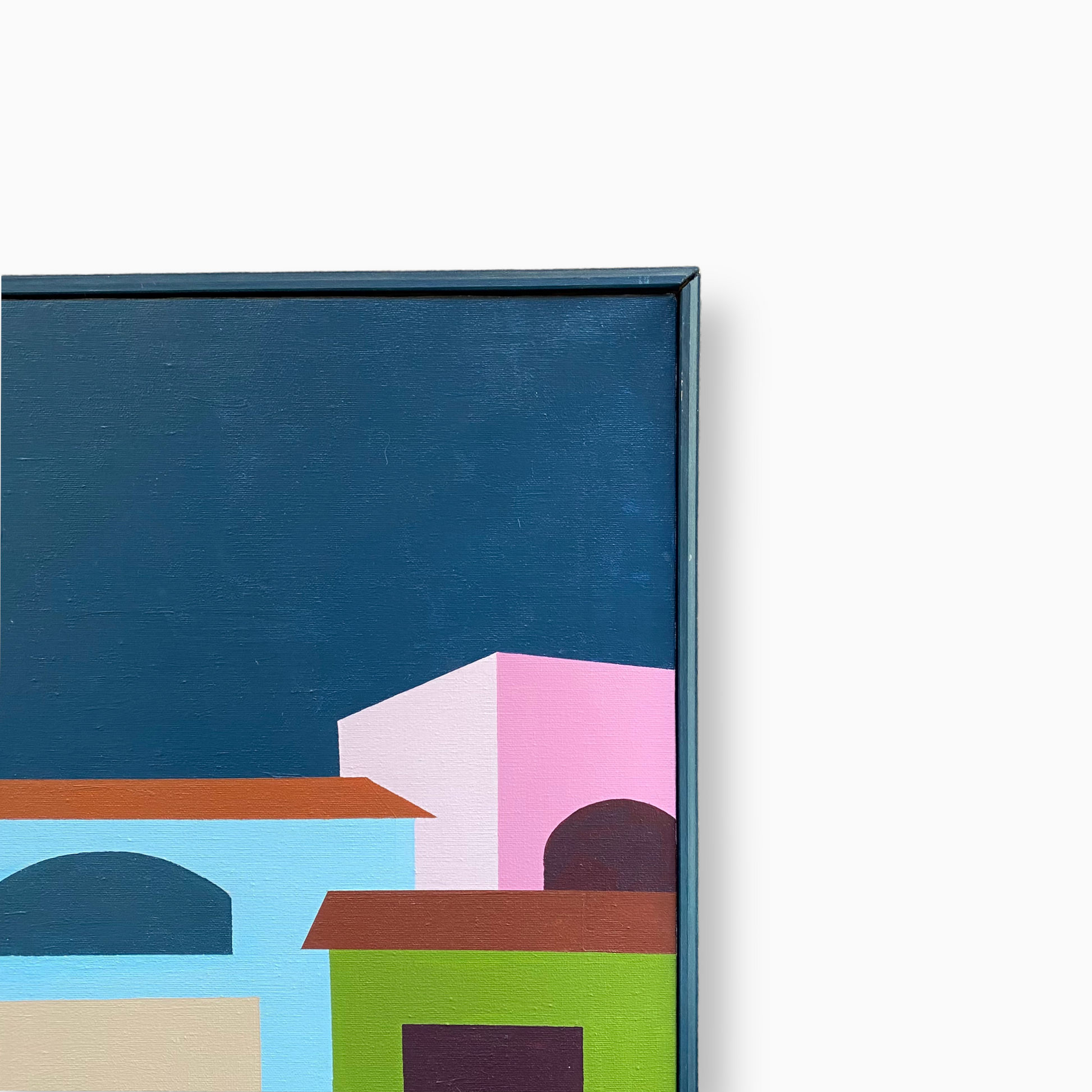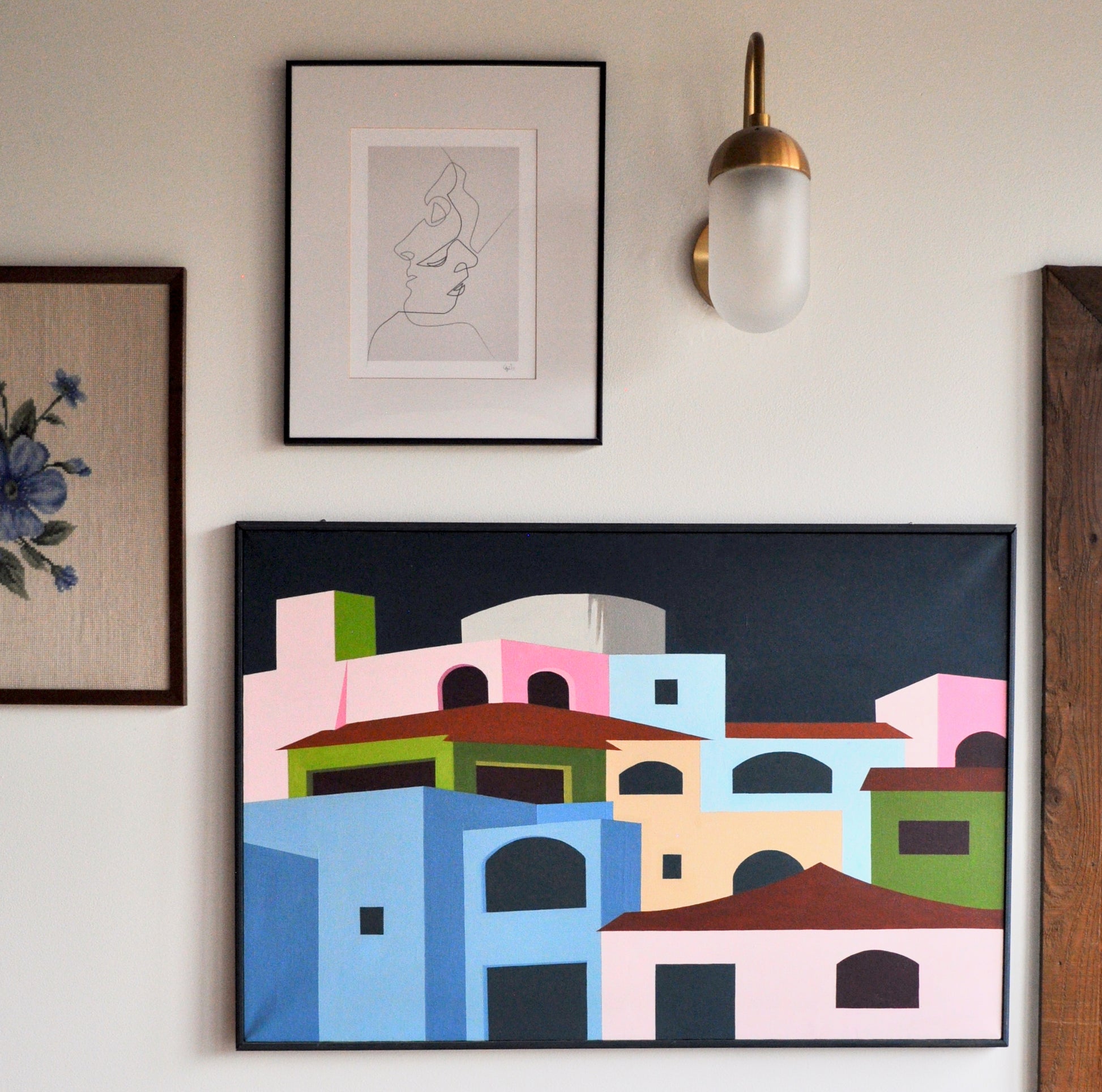 Unsigned original cityscape painting on canvas. Reminiscent of coastal Italian villages like Cinque Terre and Amalfi.
