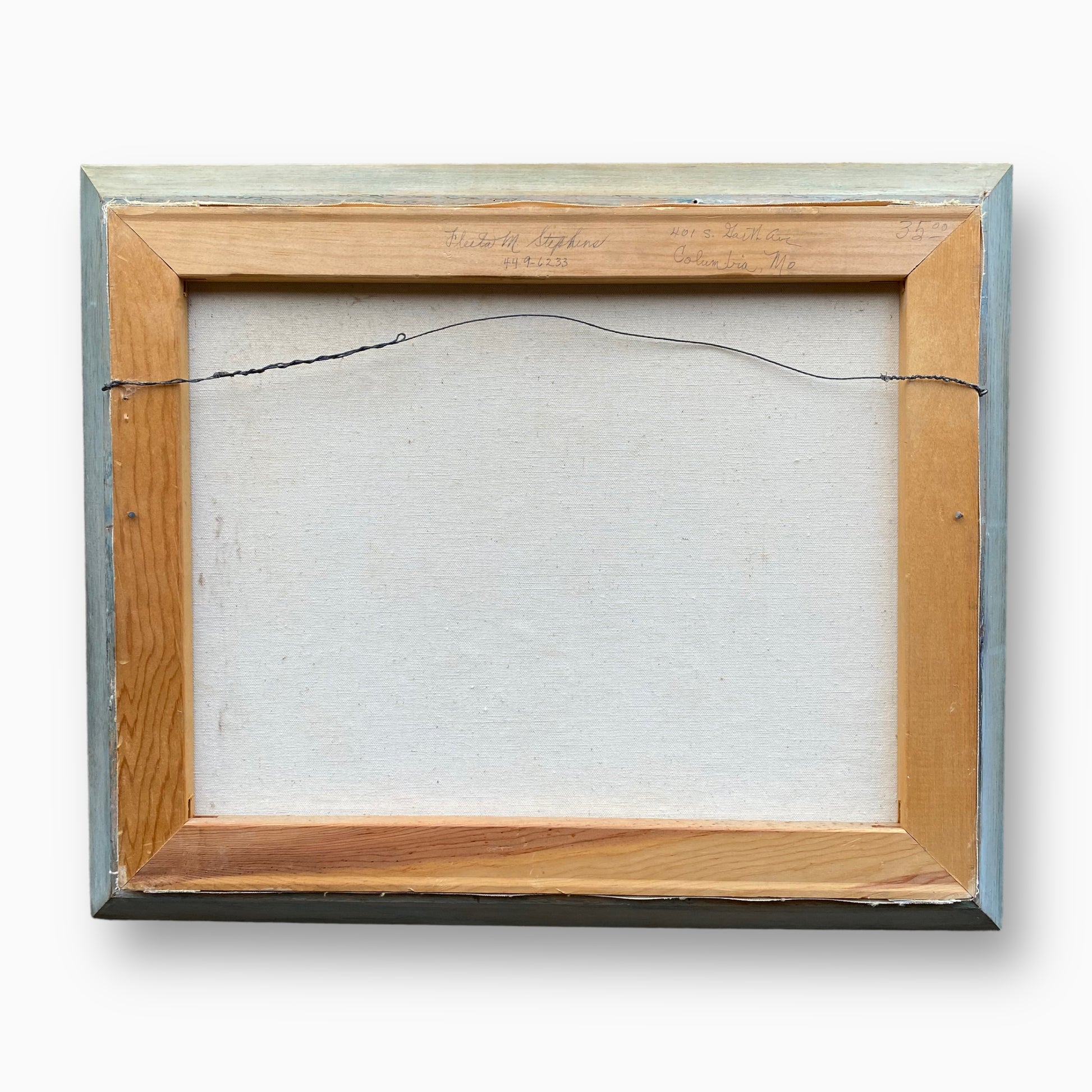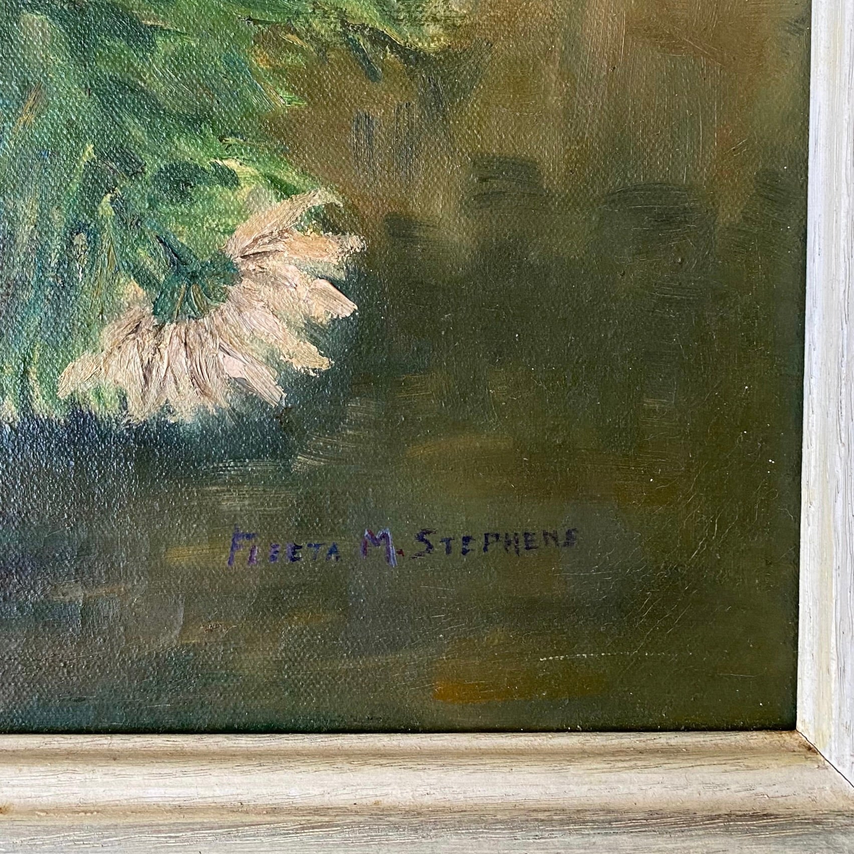 Oil painting of yellow and blue daisies signed by Fleeta M. Stephens (1897-1993).