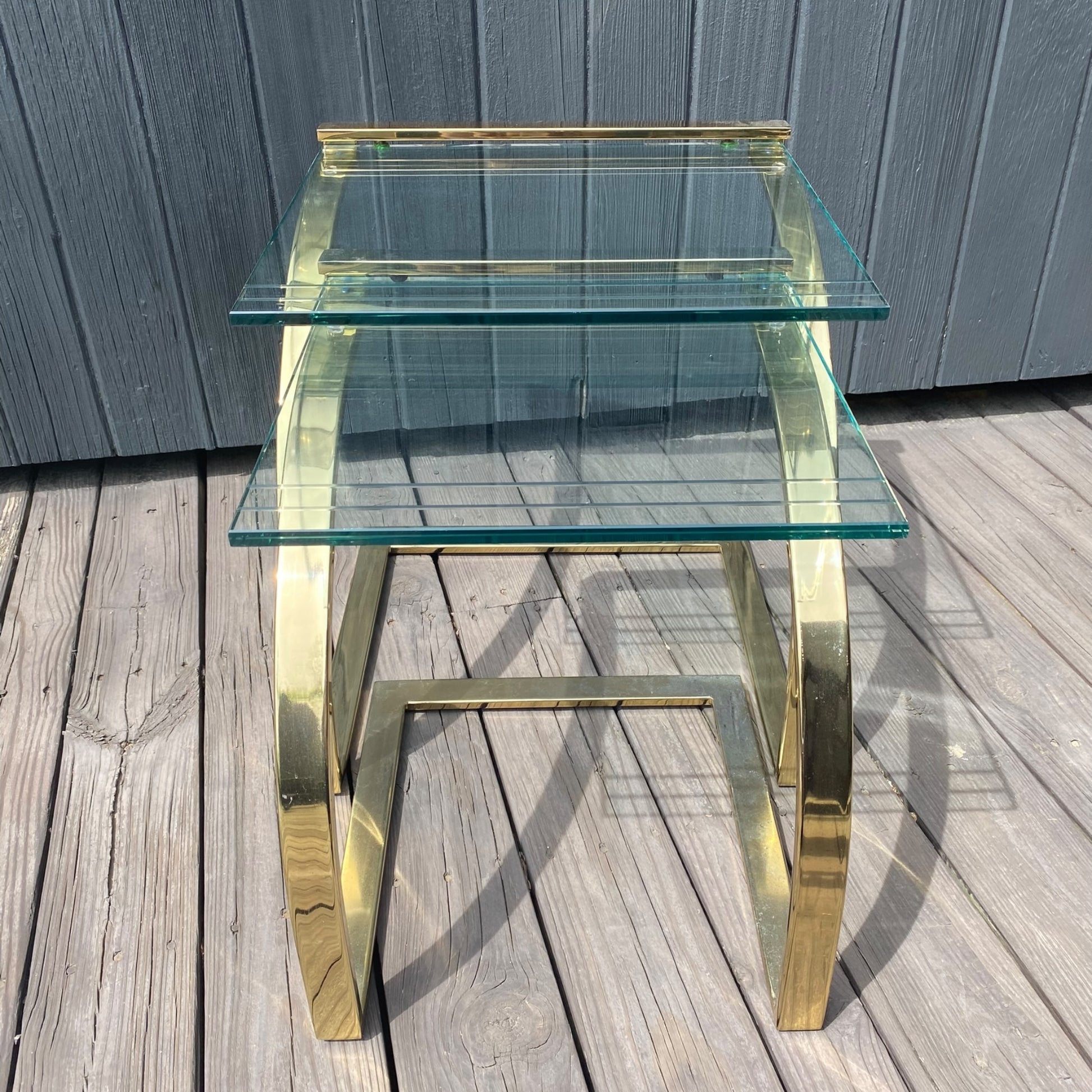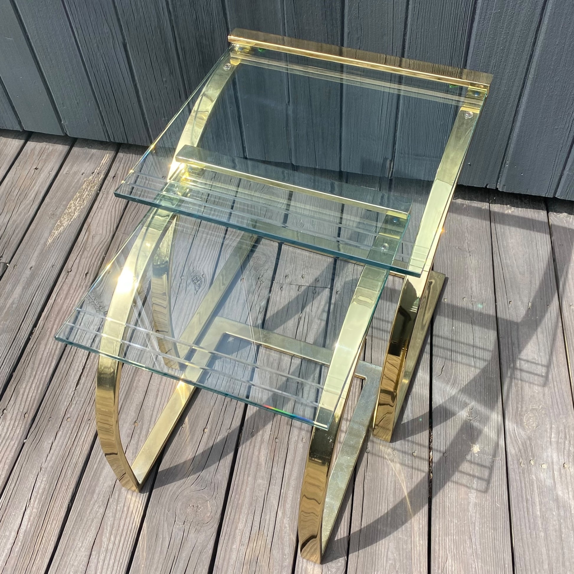 GLASS AND BRASS NESTING TABLES
