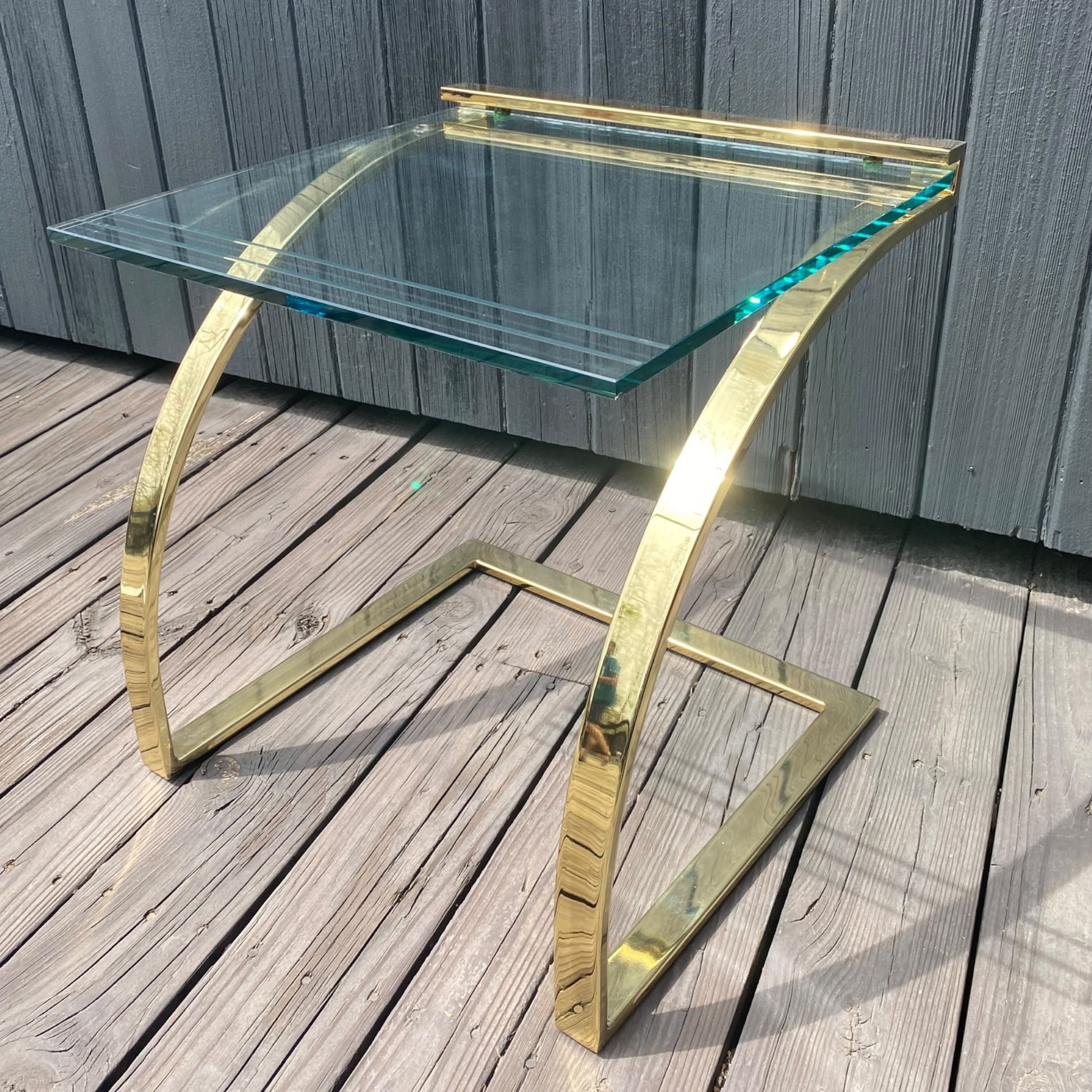 Vintage brass and glass cantilever nesting tables. Style reminiscent of Milo Baughman.