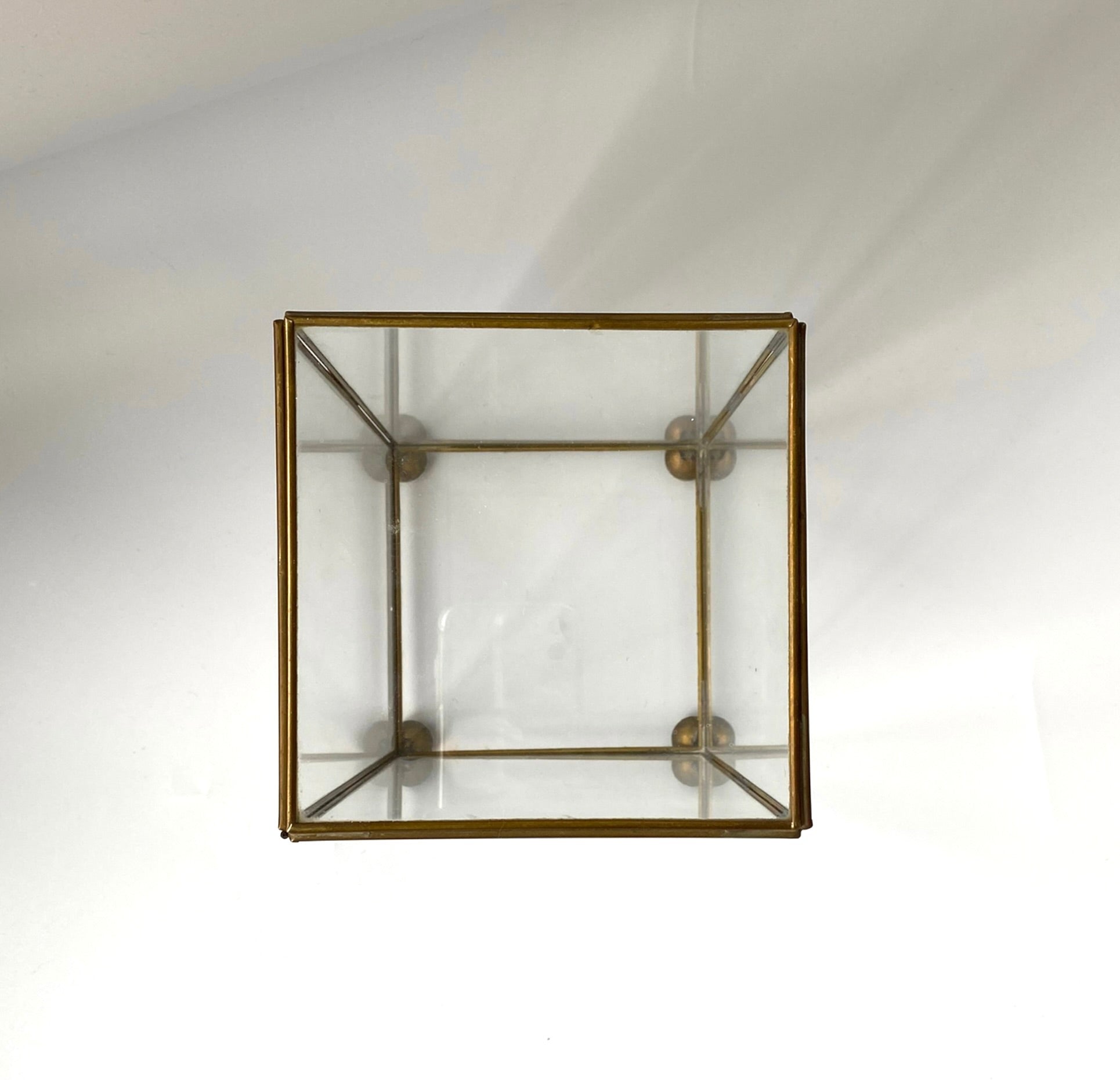 Vintage brass and glass display box with latching door. Perfect for showcasing your favorite items.