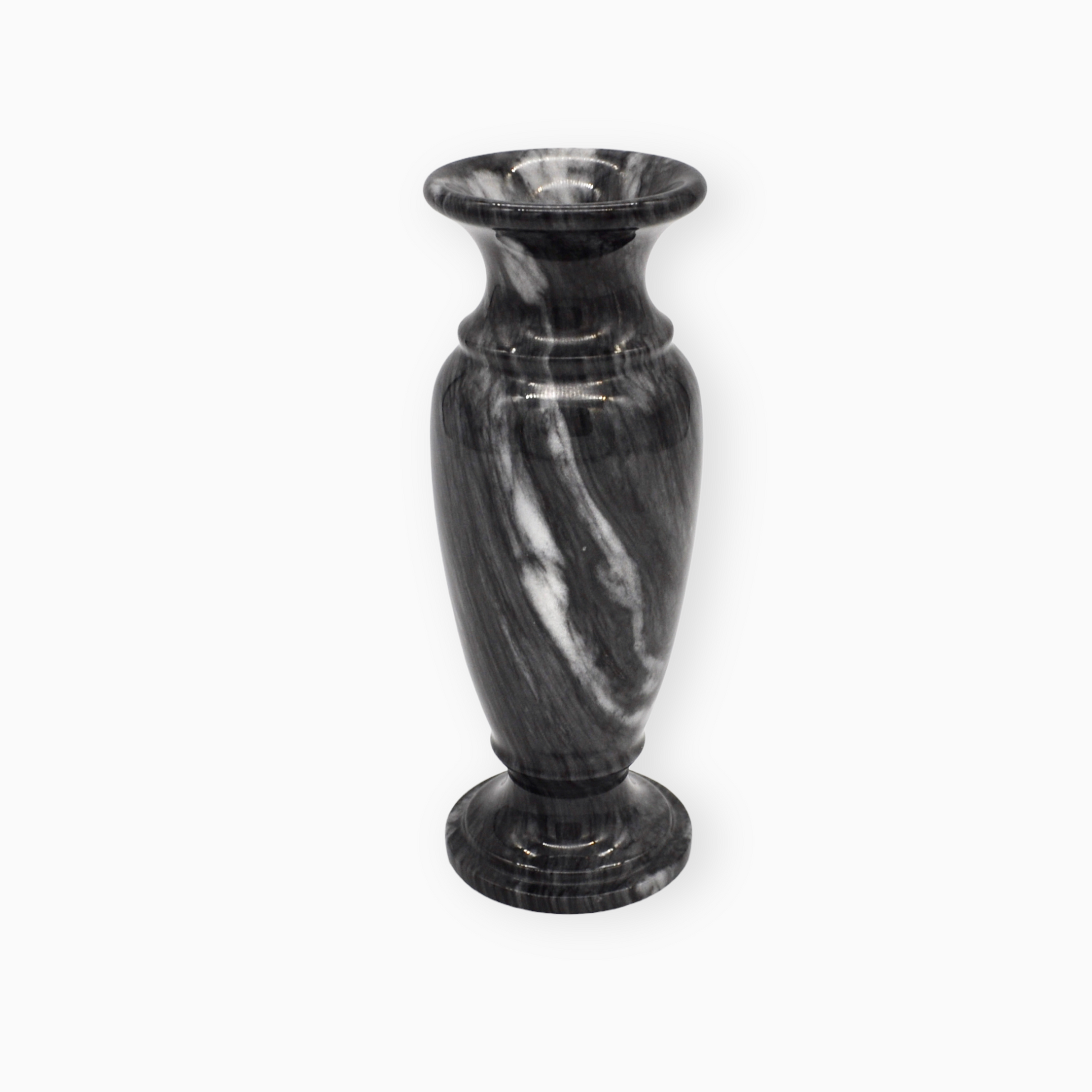 Elegant marble vase with black, white, and grey veining. In excellent condition with no chips or cracks.