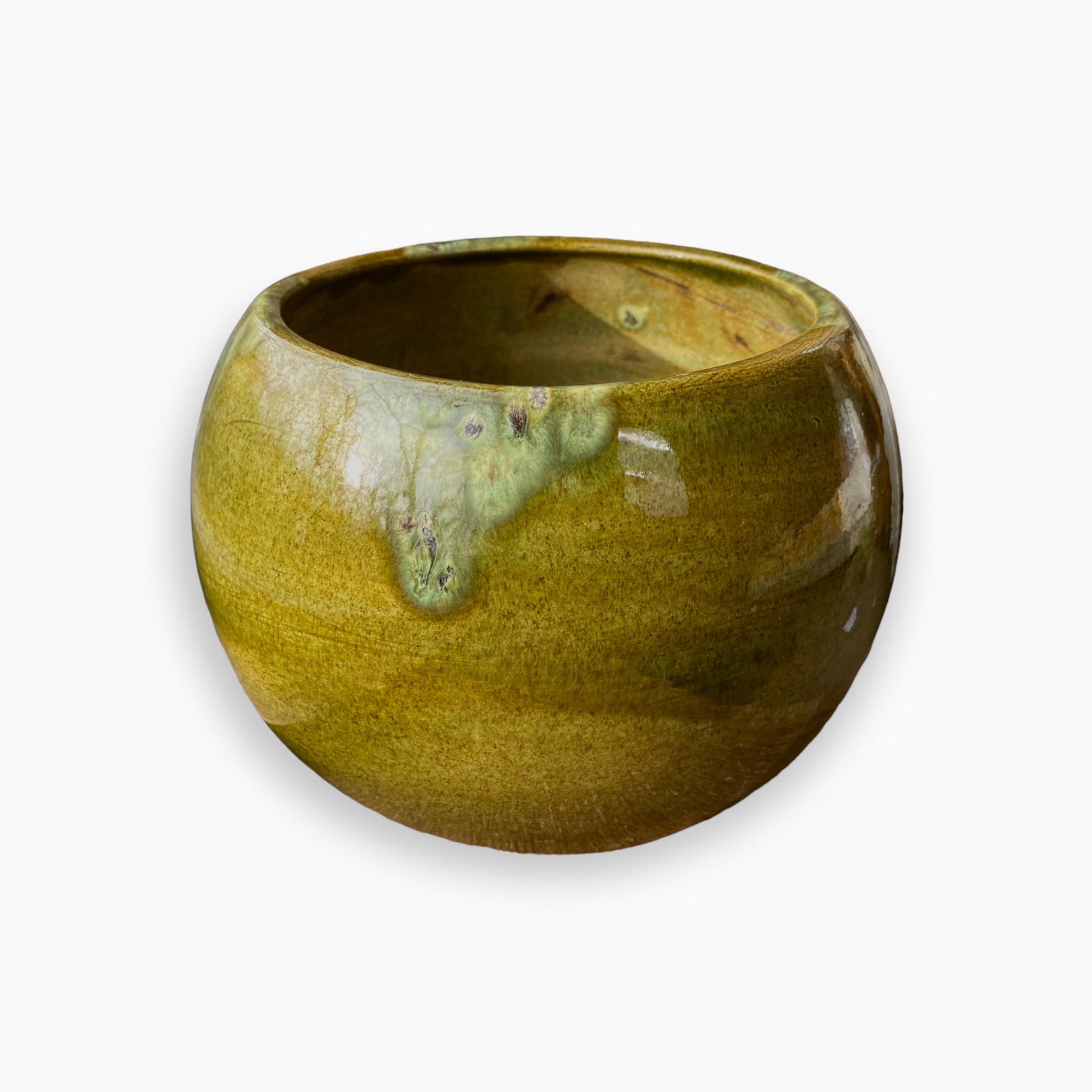 Green glazed ceramic planter. Stamped with "Arnel's" — a ceramics company founded in Beaverton, Oregon in the 1950s. In good vintage condition.